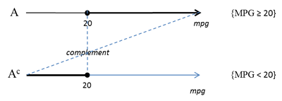 In Measuring MPG (Miles per Gallon), events like "MPG below 20", "MPG between 20 and 30" or "MPG above 30" may occur.